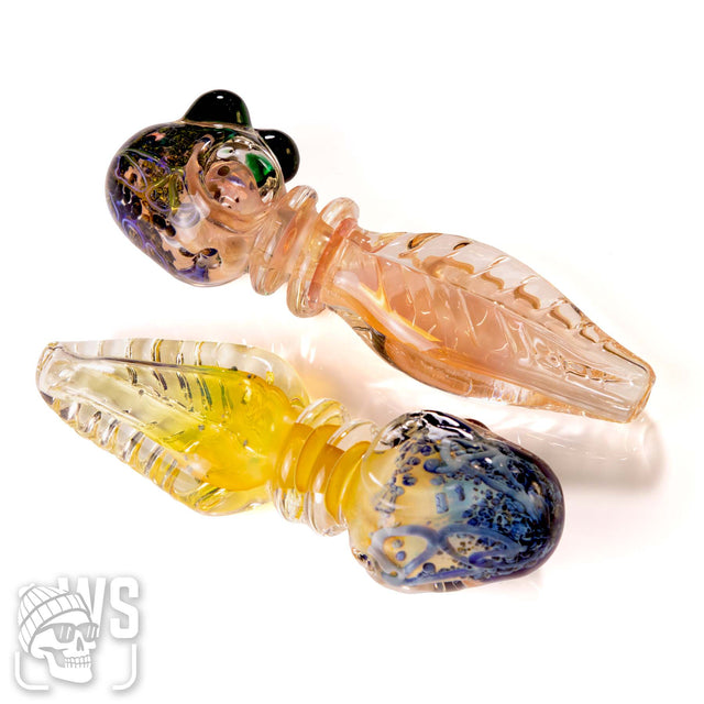 GLASS TURTLE HAND PIPE WITH LEAF BODY DESIGN - Style A is backordered and will ship as soon as it is back in stock.