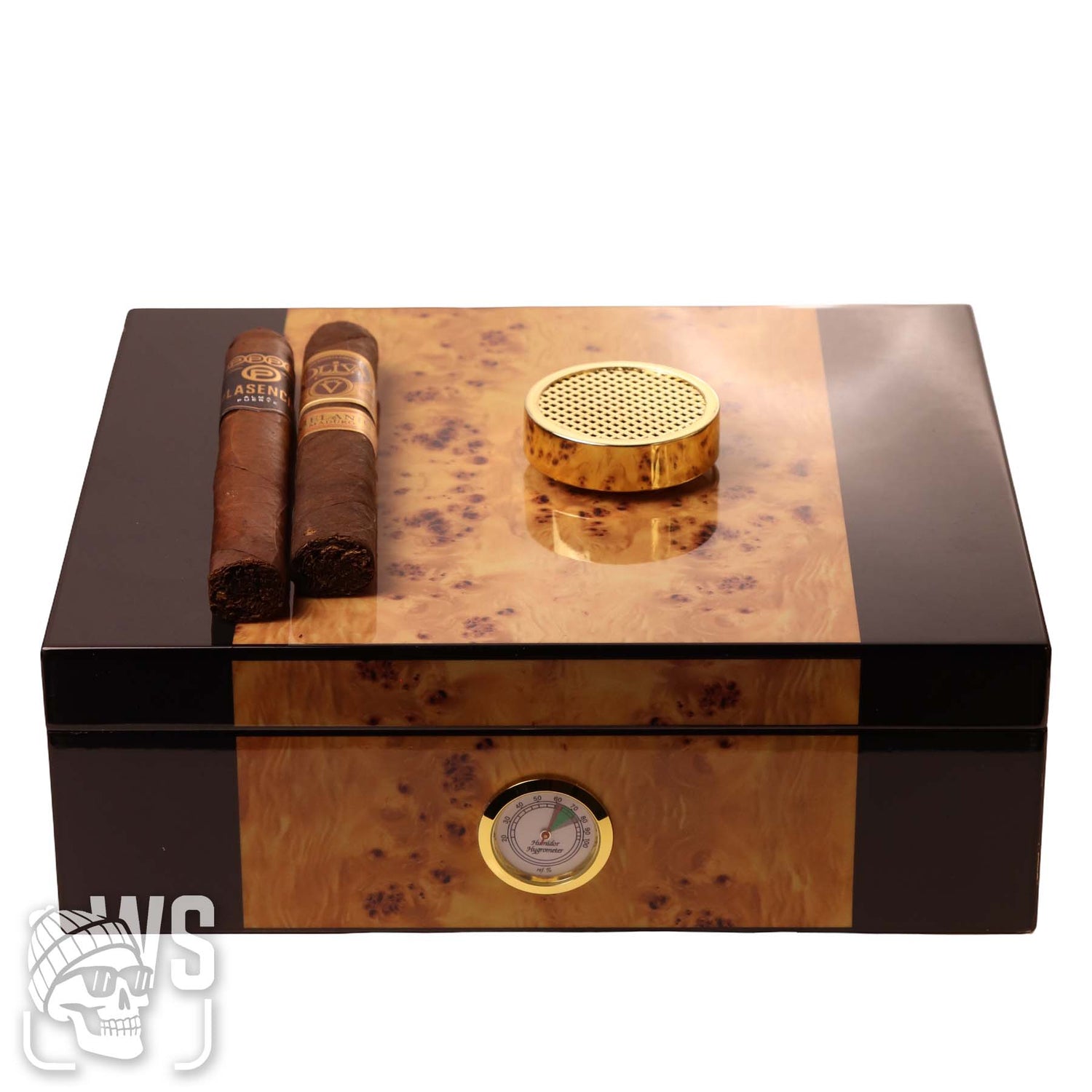 LUXURY WOOD CIGAR HUMIDOR WITH HUMIDIFIER AND BUILT-IN HYGROMETER