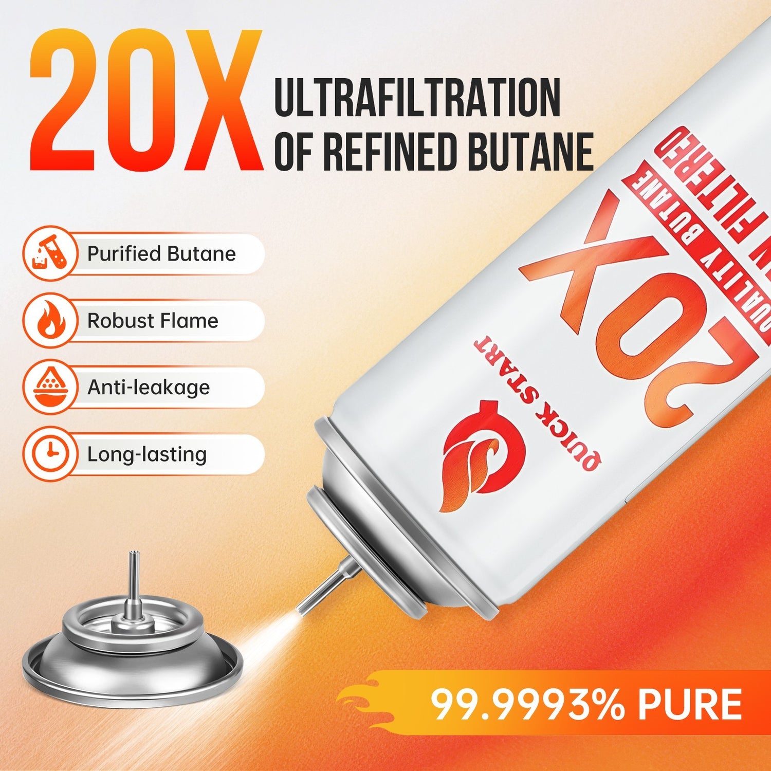 ✅ 20X Refined Purity - Ultra-refined butane ensures a clean burn for consistent, reliable performance.