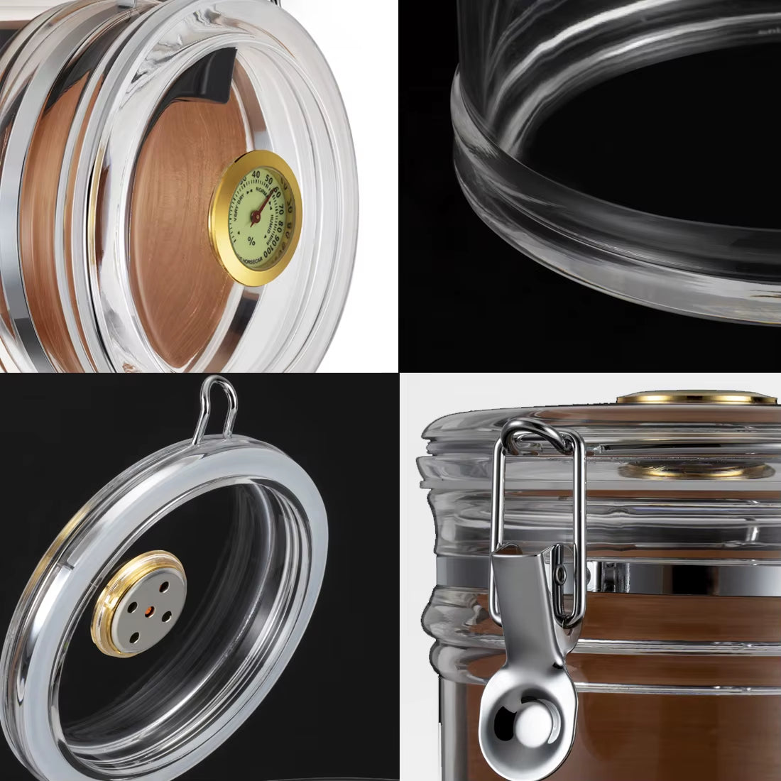 ACRYLIC CIGAR HUMIDOR JAR WITH HYGROMETER & HUMIDIFIER – HOLDS UP TO 18 CIGARS