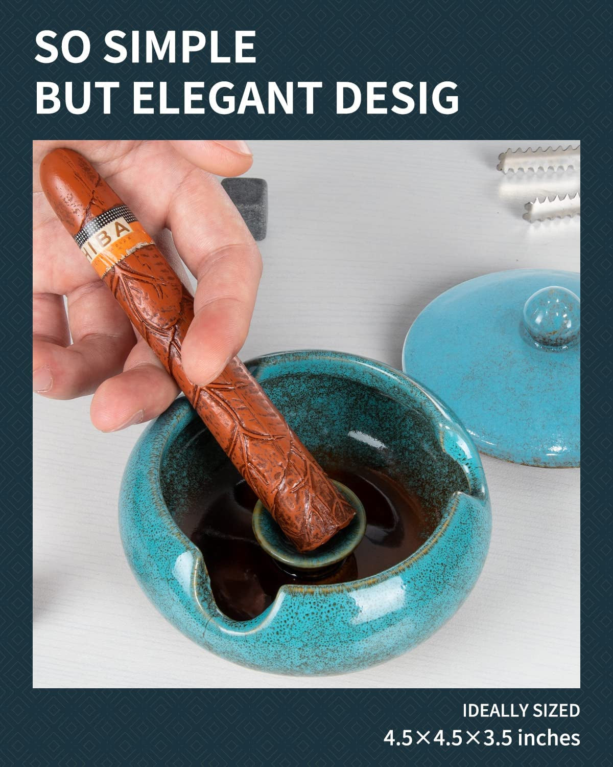 ✅ Multi-Rest Design - Features three wide grooves and a central pillar to neatly hold cigars or cigarettes and extinguish butts.